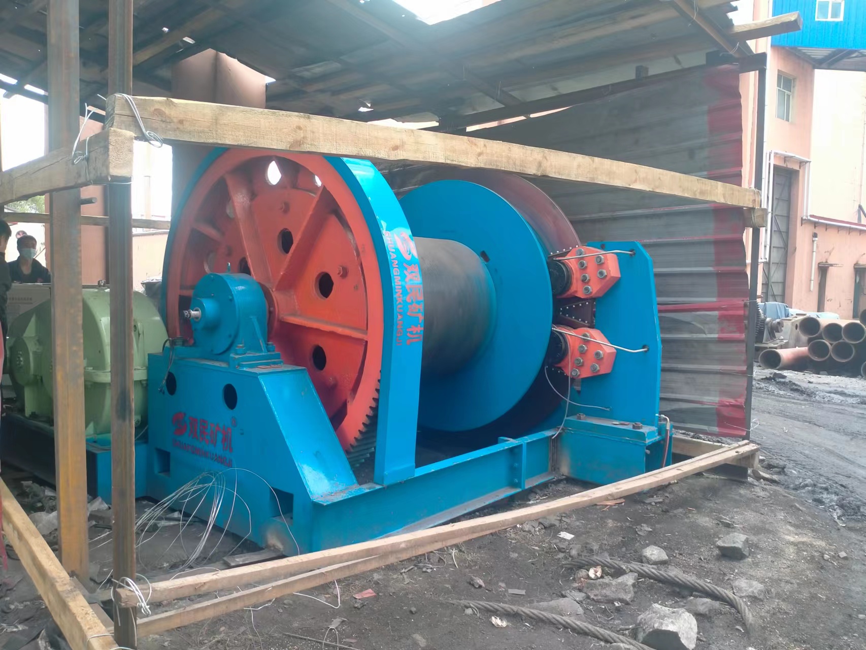 本絞車(chē)主要用于煤礦、金屬礦和非金屬礦豎井井筒掘進(jìn)時(shí)懸吊吊盤(pán)、水泵、水管、注漿泵、風(fēng)筒等掘進(jìn)設備和張緊穩繩,該絞車(chē)系雙鋼絲繩懸吊。將減速機上的差動(dòng)手把放在差動(dòng)位置,若張緊穩繩,可使兩根穩繩的張緊力保持相等;若懸吊水管、注漿管、風(fēng)筒等管類(lèi)設備,可保證其被懸吊管類(lèi)設備與地面保持垂直的狀態(tài)。如果懸吊吊盤(pán)等盤(pán)狀設備,需將其差動(dòng)手把放在直通位置,才能實(shí)現兩繩繩速的一致。